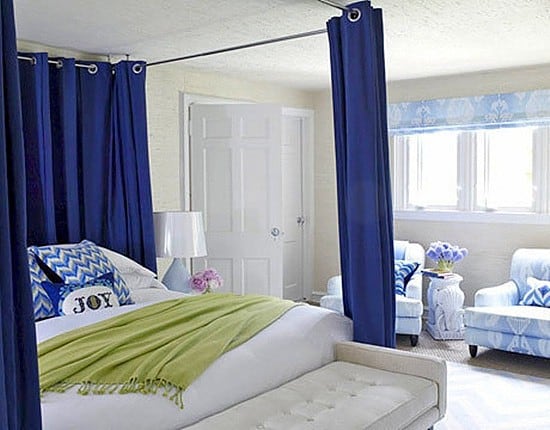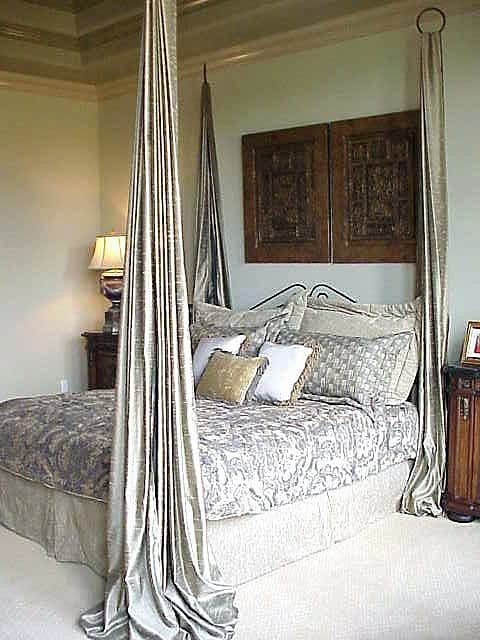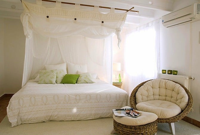- Minimál baldachin. Ettől kell egyszerűbb? Csak a sálak lógnak a mennyezetről, imitálva a klasszikus körvonalat.