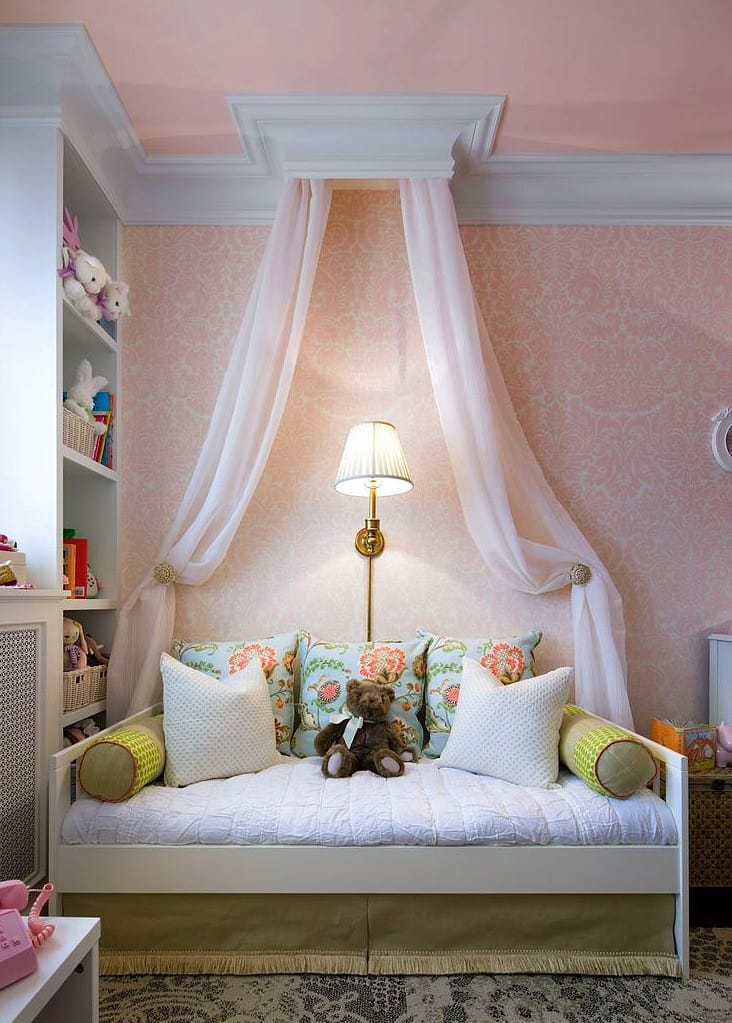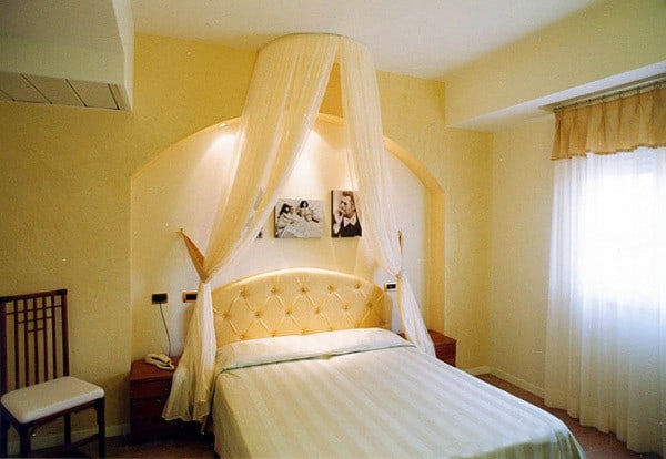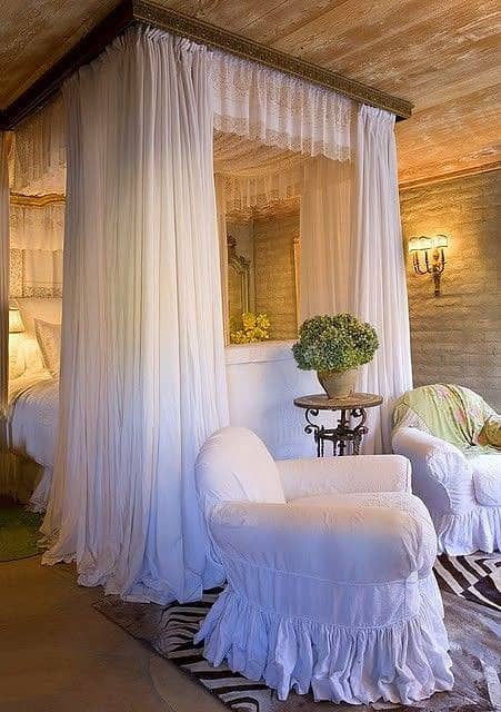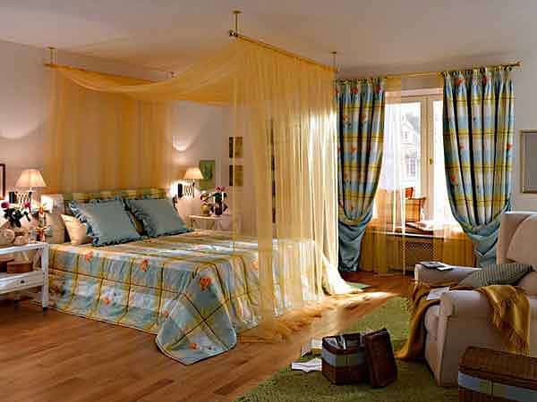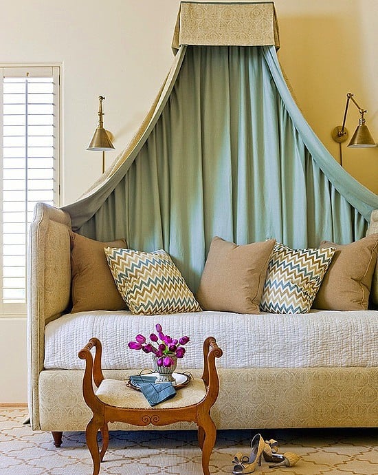 Minimál baldachin. Ettől kell egyszerűbb? Csak a sálak lógnak a mennyezetről, imitálva a klasszikus körvonalat.