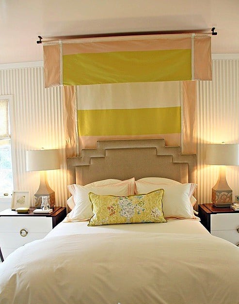 Oldalfali baldachin, akár tini kuckóba. Egyszerű szerkezet, egyszerű textilek, mégis a szomszéd irigyelni fogja!