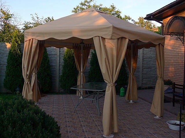 Igen jól szűri a fényt – árnyékol, sűrűbb szövésű, és matt felületű vászon- igazi kerti dekor függöny.
